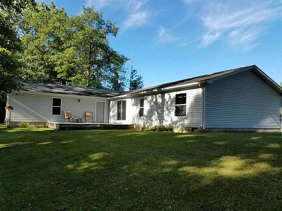 Immaculate Country Home on 5.24 Acres!! 3 Bedroom, 2 Full Bath with open concept layout. This spacious home additionally features a Den, Living Room, Family Room, Dining Room, Kitchen, Laundry. Partially wooded with mowed clearing and small flowing creek/ditch. Covered 10x14 front porch, fantastic large 16x19 deck overlooking the woods. Attached oversized 26x28 2-car garage. Champion Windows installed in 2010 with transfer warranty. Trane Furnace/AC new in 2011. Water softener owned. Appliances included. This a great country home, contact your agent today for your private showing!!