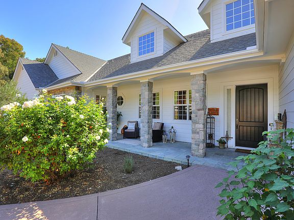 Beautiful white farmhouse on one acre in the Ballard School District. Features include 4 bedrooms, 3 baths, plus an office/library, & upstairs bonus room that has its own separate heat/air & closet. 8 ft solid wood interior doors, quality hardware, and white wood shutters, throughout. Dark maple wood floors, light and bright interior. Updated kitchen has quartz counter tops, stainless sink, wine refrigerator and breakfast bar. The spacious master suite has backyard views, coffered ceiling, gorgeous updated master bathroom with oversized dual head shower & ship-lap walk in closet. Living room with picture windows, gas fireplace in the family room and separate formal dining room. Outdoor living is a vacation at home! Massive resort-like luxurious pool and infinity spa &waterfall.