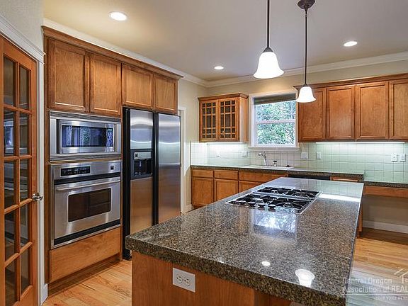 Custom built home in great NE Bend neighborhood. Mature landscaping, large covered front porch & two separate outdoor living areas. Open floor plan featuring spacious kitchen with stainless steel appliances, hardwood floor, pantry & large island. Gas fireplaces in great room and master suite. Custom built-ins throughout. Master on main with private deck. Laundry room with sink and cabinets. Large bonus area, den, two bedrooms & full bath upstairs. Attached double car garage plus A/C. Convenient location!