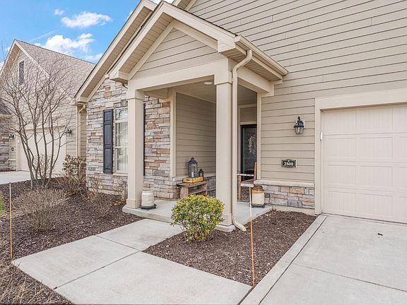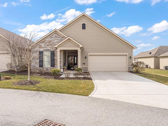 Courtyard ranch home now available in Pepper Creek. Enjoy main floor maintenance free living at its finest. Open concept kitchen with large breakfast bar, great room with fireplace and dining room. Primary suite features large bedroom with access to screened-in porch, walk-in closet and ensuite with double vanities and walk-in shower. 2nd bedroom has adjacent full bathroom. In addition, there is an office/den, finished laundry room and private courtyard. The kitchen is equipped with maple cabinetry, granite counter tops, tile backsplash, cabinet lighting, large pantry and stainless appliances. The finished garage is oversized featuring drop down stairs for additional attic storage space. Many upgrades include hickory flooring, tray ceilings, lots of crown molding, arched doorways and transom windows for extra daylight. Association fees cover lawn mowing, landscaping, snow removal, clubhouse with exercise room and community pool. Washer/Dryer, TV's and Hot Tub negotiable.