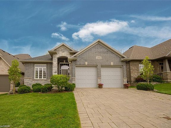 Welcome to 2800 Sheffield Place, a beautifully crafted, custom-built bungalow offering stunning views of the Thames River and just steps from scenic walking and biking trails. Step into the spacious foyer and be immediately impressed by the open-concept layout, thoughtfully designed for both everyday comfort and elegant entertaining. The living room features rich hardwood flooring, a cozy gas fireplace flanked by custom-built-in shelving, and California shutters throughout the home for a refined touch. The kitchen is a chef's dream, boasting granite countertops, an oversized pantry, and direct access to a covered deck overlooking the professionally landscaped, fully fenced backyard perfect for relaxing or hosting guests. The main level also includes a convenient laundry room, a mudroom with garage access, and two spacious bedrooms. The primary suite offers a 4-piece ensuite (with plumbing in place for a tub), along with dual walk-in closets for ample storage. A second full bathroom completes this level. Downstairs, the fully finished walk-out basement adds incredible flexibility with in-law suite potential. You'll find a generous open-concept recreation room with another kitchen, terrace doors leading to a private patio, a large bedroom with a full-sized window, a 4-piece bathroom, and a substantial storage area. This home is ideal for those seeking tranquility, space to entertain, and a strong connection to nature, all while being just minutes from local amenities and with easy access to Hwy 401. Don't miss this rare opportunity!