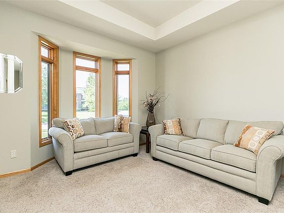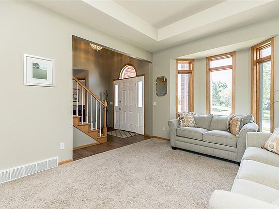 Experience Luxury living with a view of the 18th hole on Hunters Ridge Golf Course! This Beautifully maintained 2 story home features 4 bedrooms, 3.5 baths, over 3,600 sq. ft, just under half an acre of lusious landscape, 2 living areas, formal dining, open concept kitchen with large island, tile backsplash, eat in dining area, and stainless steel appliances, 3 seasons room leading out onto your oversized deck with those amazing golf course views, office/den, a generous sized master suite with trey ceilings, private balcony, and attached en suite with jetted tub, dual vanities, separate shower, and large walk in closet. The finished lower level with bar area, rec room, work out room with built in sauna and full bath attached, and attached 3 car garage! This home provides all the space and amenities you and your family could want and need!