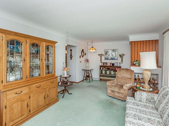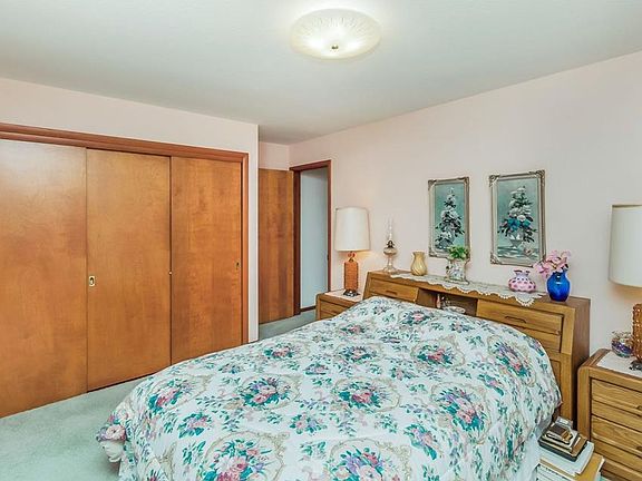 This well maintained cozy ranch has all the vintage charm in almost original condition, with all oak trim & doors, & in a very a quiet convenient neighborhood. Living room features original wood entryway & shelving, coved ceilings, & large front window. Bedrooms feature large closets. Kitchen has the original vintage cabinets in great shape, with a built in glass front to display items in the dining room. Dining room features larger sliding doors to covered patio in the partially fenced in back yard. The Lower level has built in bar with glass front cabinets, wood shelves, a pool table area, a non-conforming bedroom, and a ¾ bathroom, and finished SF is an estimate, buyer needs to measure. 2 stall garage has one new garage door opener. All Appliances stay: Stove, Dishwasher, 2 Refrigerators, Microwave, Washer and Dryer. New Roof 2001; Air Conditioner 1997; Furnace 1993; Aluminum siding 1984.