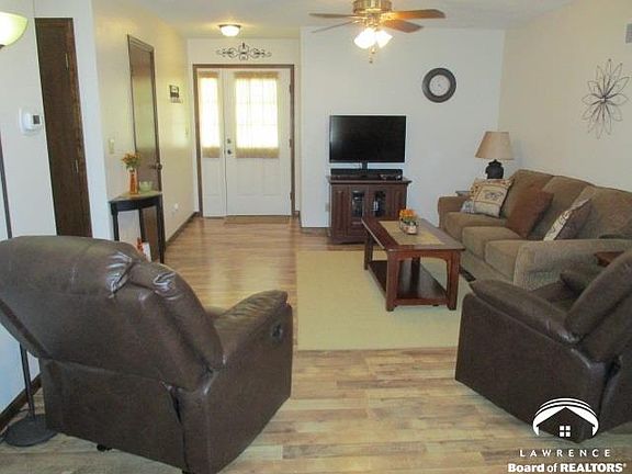 One Level Living Ranch home! Beautifully maintained, close to recreational facilities, K.U. and shopping, highway access to both K.C. and Topeka. Large kitchen with a big pantry and main level laundry room. Enticing front porch and a fenced rear yard with a main level deck & lower level patio. Basement living space offers a separate kitchen, bath and bedroom that offers endless possibilities. Basement appliances remain. Large storage room.