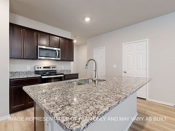 The Seabrook is a single-story, 4-bedroom, 2-bathroom home that features approximately 1,873 square feet of living space. The bright and welcoming foyer flows into the open concept kitchen and dining area. The kitchen includes a breakfast bar and perfect sized pantry. The main bedroom, bedroom 1, features a sloped ceiling and attractive bathroom with dual vanities and spacious walk-in closet. The standard covered patio is located off the breakfast area. Additional finishes include granite countertops and stainless-steel appliances. You’ll enjoy added security in your new D.R. Horton home with our Home is Connected features. Using one central hub that talks to all the devices in your home, you can control the lights, thermostat and locks, all from your cellular device.