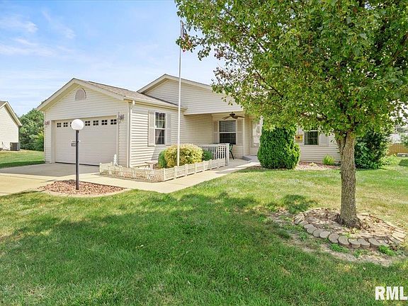 Relax and enjoy this wonderful gated 55+ Community, featuring lovely 3 bed split floor plan, 2 full bath ranch home w/2 car attached garage. Spacious living room with sliding door to back yard with concrete patio and electric awning that extends the length of the patio. The kitchen has a large island, lots of cabinet space and a breakfast bar. The large primary en-suite has a step in shower, dual sinks, lots of cabinets, walk in closet, and linen closet. New in 2015 Roof, Heat Pump, A/C, Water Heater, and all Appliances. For your convenience and enjoyment, the Association includes a clubhouse, plenty of year round activities, a lake for fishing, community park, and a fitness center. Also included for maintenance free living is lawn care, snow removal, and trash service. All buyers must be approved by the Management and must be 55 or older (the second owner may be 40+). Buyers lease the land. Come see your new home today!