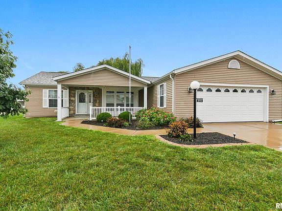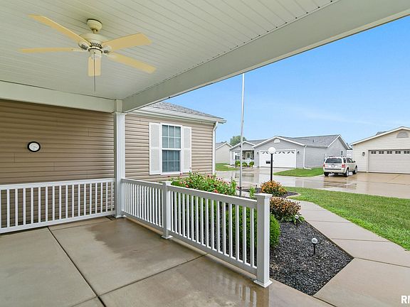 Maintenance free lifestyle at beautiful Timber Creek! This 55+ Community handles all your daily tasks including lawn care, trash and recycling, snow removal, common area maintenance, which include a pond for fishing, group activities, and community/fitness center. This 2/3 bedroom home was constructed in 2015 and offers an office with built in desk space and cabinets (could be converted to third bedroom). The home offers a floor plan with the living room open to a beautiful kitchen with maple cabinetry, all the appliances stay. The split floor plan allows for privacy with a large primary suite with walk in closet and shower and a 2 bowl vanity on one side and guest bedroom and bathroom on the other. There is a a large mudroom with a washtub. This unit is on the water with a patio and an amazing covered front porch. The garage is an oversized 2 car. Taxes are $146 a year and the association fee is $450 a month. Meticulously maintained and move in ready!