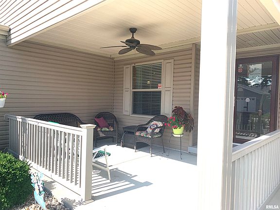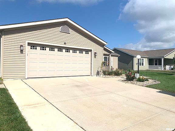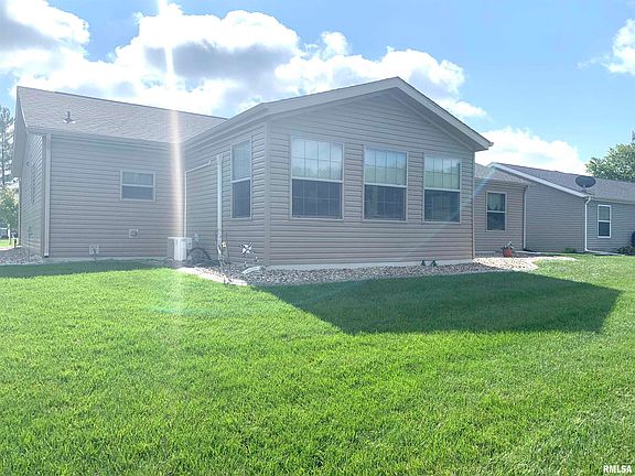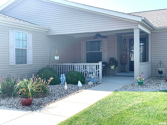 Lovely and well maintained home on the water, front and center of the fountain! Oversized 2.5 car garage, a lovely large sun room, covered porch and patio! Three bedroom and two full baths, all appliances stay including washer and dryer, irrigation for lawn, security doors, sump in crawl, kitchen disposal, NEW ROOF 8/23!! As well as many amenities that come from living within the 55+ active senior community! Full list available upon request.