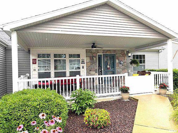 Lovely and well-maintained WCA home within a quiet senior community, 3 bedroom, 2 full baths, 2 car attached garage, extra shelving and work bench installed in garage, new garage door opener, all appliances stay including W/D, monthly fee covers taxes on land, snow removal, mowing, weed and feed and fertilizing, trash, recycling, light poles, fitness center, pavilion, and game area (Corn hole), golf cart community, 3 catch and release ponds, garden center, and security gate, a great place to live!!! BRAND NEW ROOF COMING SOON, most furniture and golf cart negotiable.