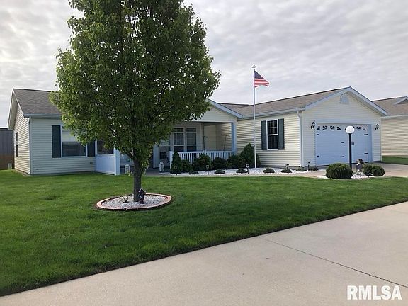You will love this Move in Ready 3 bedroom, 2 bath ranch home. This home boasts large windows, beautiful cabinets and low maintenance living! Park approval is required. The park takes care of mowing, snow removal, trash and recycling services and property taxes on the land. The clubhouse has many amenities including a fitness and gardening center. 2 years of Home Choice Warranty coverage included! The Service fee is $65. The Freezer and shelving in the garage stay.
