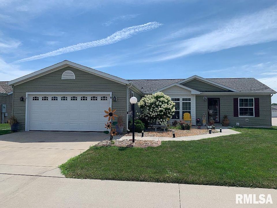 On the Pond! 3bd/2ba/2cg ranch home, beautiful cabinets, large windows for lots of light, plus all the added benefits of maintenance free living! Park approval required, park mows, removes snow, services light poles, trash and recycling, has a fitness center and gardening center, and pays property taxes on land. Large covered patio and fence yard, excellent view of the fountain! Brand new flooring in living room just installed!