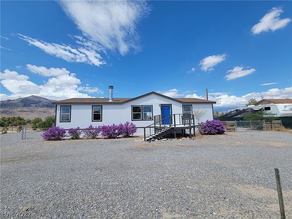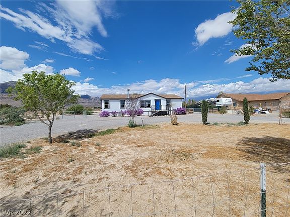 Move in Ready! 2006 renovated manufactured home on over an acre for sale in Pahrump, NV! 3 bedroom 2 bath home features walk in closets in all bedrooms, new paint, new flooring, new fixtures, new roof! Newer 14 SEER AC - 2017! Amazing north end mountain views, mature landscape, circular driveway & fencing, plus back yard shed! Don't miss out on this great buy!