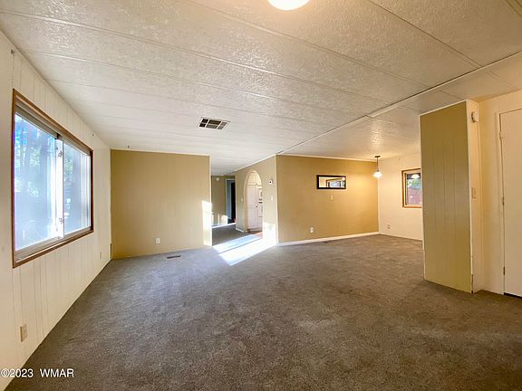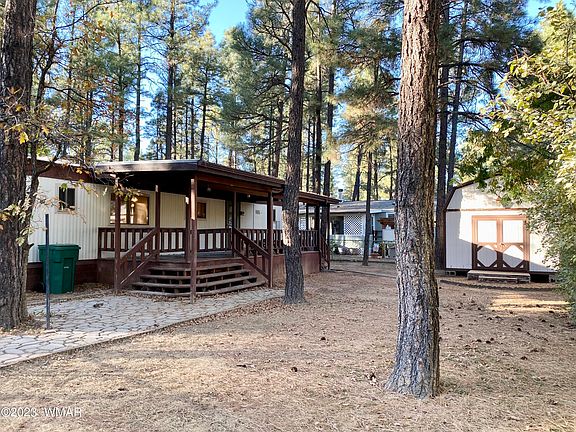 Are you seeking affordable living within the AZ White Mountains? This doublewide manufactured home offers 1536 sq. ft., 3 bedrooms/2 baths, a large family room, separate dining, kitchen w/ abundant storage and a bonus den/hobby/teen room to fit your needs. Bedrooms feature built in storage and newer carpet throughout. Enjoy the cool mountain air from either of two decks and a fenced backyard. Two sheds provide ample space for your belongings. Bring your vision and don't delay-submit that offer today!