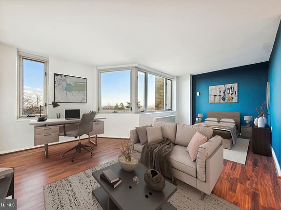 Step right in and be amazed by the spectacular panoramic views of the DC and Virginia skyline! You will have a front row seat to the highly coveted DC firework show right from the comfort of your own home. This recently renovated pet friendly studio unit with spacious efficiency is lined with large windows allowing for natural light to pour in and beautiful views of the city. A truly meticulously maintained unit with notable unit upgrades such as new paint throughout including walls and refurbished modern kitchen cabinetry, new luxury vinyl flooring, new bathroom stone tile flooring and brand new bathroom sink vanity and more. A wonderful Pied Au Tier, first apartment or an investment. All of your utilities are covered in the monthly condo fees. An unbeatable location with an easy walk to Georgetown, the Cathedral and dozens of shops, entertainment, restaurants and food markets such as Trader Joes, Safeway, Wholefoods and any genre of dining you desire. Conveniently jump on the bus stop right outside the building entrance to connect to the closest Tenley Metro Station 1.5 miles down the road to explore anywhere in the DMV area. Garage parking available for rent within the building. On-street parking permit stickers can also be obtained through DC. A complete turn key property, you won't have to lift a finger!