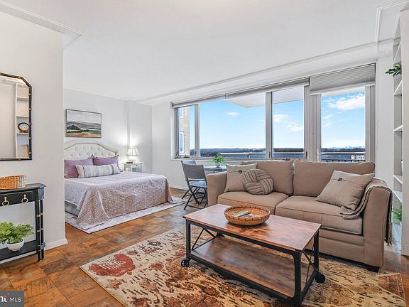 Wonderful sun-drenched studio in pet-friendly building in CathedralHeights/Glover Park is all about the views! Fabulous expansive view west from the wall of windows, which flood the unit with natural light. You can see all the way to Reston! The sunsets are spectacular! Original parquet floors, fresh paint, compact full kitchen(appliances are about 5 years old), large closets . You could put a dresser in the closet ! Perfect private balcony to enjoy the outdoors. Close to Georgetown and walk to everything: 3 blocks to Giant, 5 blocks to Whole Foods. Home inspection report available to purchasers. One cat or lap-sized dog per unit allowed. Plenty of street parking available. All utilities included in condo fee. Make this unit your own--it's ready for your updates! Perfect starter condo for the budget minded.