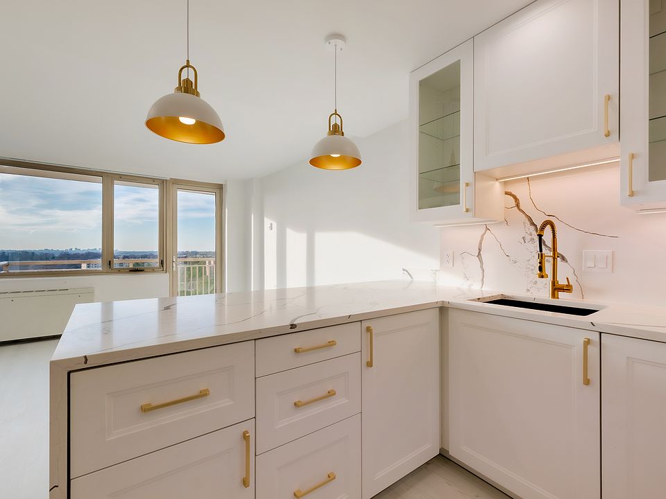 Enjoy sunsets and sunrises! Step into this charming JR 1-bedroom penthouse and experience the perfect blend of modern elegance and serene living. With breathtaking, unobstructed views from your private, covered balcony, this home offers a front-row seat to vibrant sunsets. A short walk from the National Cathedral and coffeeshops, restaurants, Whole Foods, and Giant, this little gem is walking distance to American University and Georgetown University. Fifteen minutes drive from Reagan airport, and 45 minutes from Dulles IAD airport. Street parking is easy, if you drive. The freshly renovated interior features sleek, light-toned flooring that enhances the natural light pouring through oversized windows. The stylishly renovated bathroom boasts a chic vanity with gold accents, a backlit mirror, and contemporary lighting, creating a spa-like retreat. The open living space flows seamlessly into a well-equipped kitchen with quartz waterfall island, stainless steel appliances, gas cooking, and a dishwasher perfect for both everyday living and entertaining. The building offers convenient amenities, including on-site laundry, concierge services, and beautifully landscaped grounds. Garage parking is available for rent, and the building is pet-friendly. Bike storage available in the garage. Whether you're seeking a peaceful retreat or a vibrant city lifestyle, this sunlit penthouse is your perfect match. Don't miss the chance to call it home! Utilities are a fixed fee of $100/mo. This covers gas, electric, heating/cooling, and trash. Tenant responsible for setting up and paying for cable/internet. Building is non-smoking. Pet fees apply.