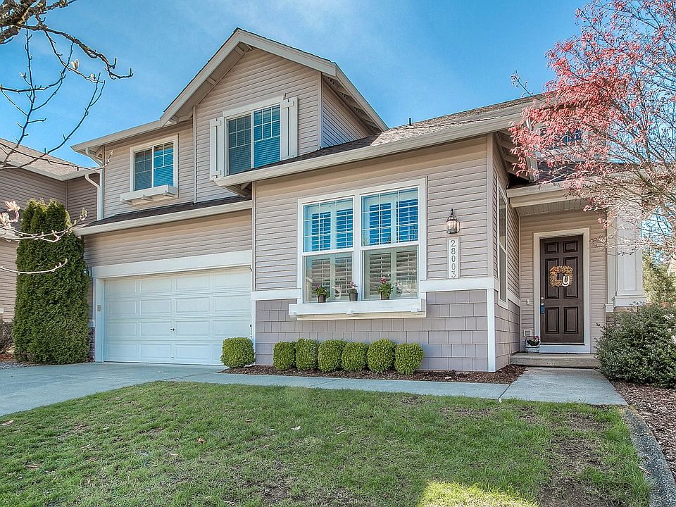 You will enjoy this beautiful home. This property has an amazing view backing up to the woods with trails to walk and ride on. This home has 4 bedrooms including a great master suite, 3 car tandem garage (perfect for longer vehicles), beautiful hardwood entry, Family Room, and spacious living room. Kitchen has good space and lots of cabinets. The yard has been very well cared for and backyard includes lawn curbing, custom back patio and raised flower beds. This home is a must see. Located in the award winning Tahoma School District!