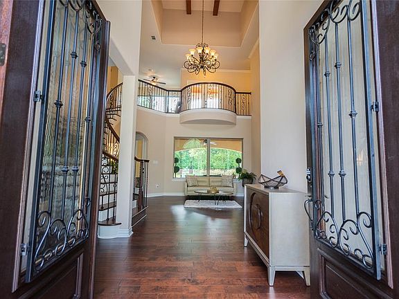 Truly an Entertainer's home - completely pet and smoke free in Benders Landing Estates. 4 bedrooms, 4 1\2 bath home on 1.05 acres. Wood flooring throughout-no carpet in the home except in theater room. Home gym and media room located downstairs. Large master bedroom already wired for automatic window shades. Master closet is full of discrete storage. 2nd bedroom down with double sinks and large walk-in shower (can be wheelchair accessible if needed). Outdoor space is a true winner with a large pool, 2 covered patio areas and a fully loaded outdoor kitchen-microwave, dishwasher, fridge, grill, 4 burner induction stove and a stand alone high flame stove. Pool bath is accessible off outdoor kitchen. 2nd floor balcony looks out to the spacious backyard. Lots of neighborhood amenities-tennis courts, basketball court, pool, canoes with a number of lakes, gym, club room for private events, baseball field, soccer field & playground. High school is the newly built Grand Oaks High School.