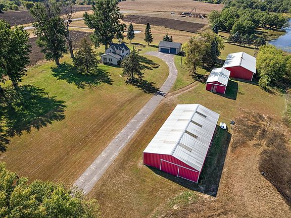 Classic updated Farmhouse in a peaceful setting located on almost 5 acres with plenty of mature trees. 2 36x72 pole buildings, large 4 stall carport/garage, and 4th garage for a total of over 7,000 sq. ft. of building space. Enjoy watching the sunsets from the east facing sunroom addition.