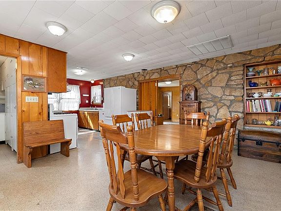This charming hand-laid stone bungalow on a diverse 76 ac m/l tract is in the southwest rural region of greater Kansas City. The house has two bedrooms on the main living level and the entire upstairs has been used as a third bedroom. One bedroom on the main level features a sink. The detached garage has two bays and a workspace. Much of the property’s perimeter is fenced, and the cross-fencing offers multiple areas for livestock to graze in the open pasture. The wooded areas provide great cover for wildlife, making it a prime travel corridor and habitat for turkey and deer who tend to linger given the ample water and food sources found on the property. The trails throughout are ideal for horseback riding and hiking, and there are plenty of places to build a good campfire and stargaze. The barn has space to store hay and stalls for horses, and the sunrises and sunsets on this farm are truly breathtaking. With approximately 0.6 miles of road frontage, the property has the potential to be split into multiple tracts. Room sizes, square footage, and taxes are estimates and should be verified by Buyer. Owner has marked approximate property perimeter in wooded areas with green flags.