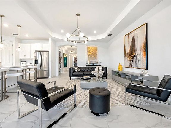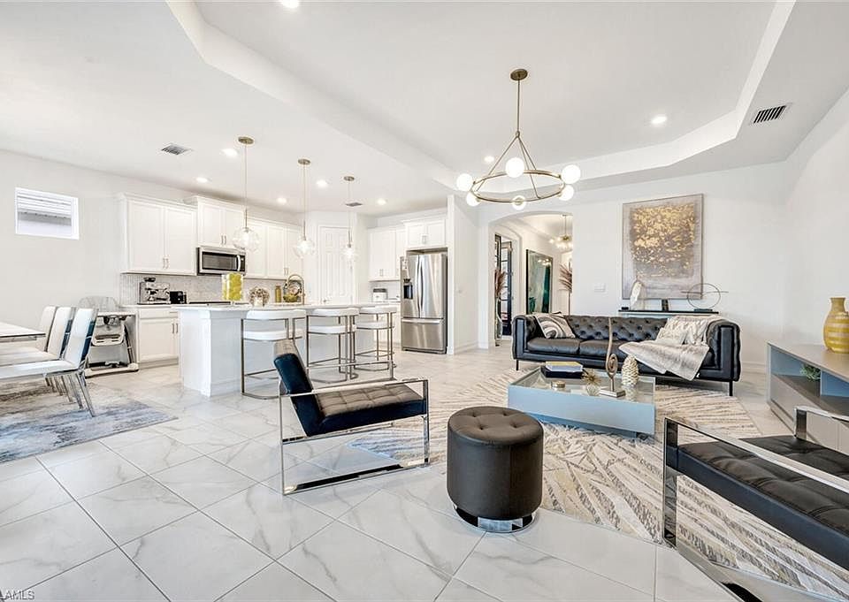 This Ashbury floor plan pool home located in Seasons at Bonita features over 2400 sf of living space and built in 2022. This pool home encompasses 4 bedrooms, den, 3 full baths, a pool bath, 2 car garage with ac, an epoxy floor and extended driveway. Custom features include: 42" kitchen cabinets, quartz counters, backsplash, apron sink, SS appliances, tray ceilings, upgraded West Elm custom lighting, porcelain tiles and lots of natural light throughout the home. The primary owner's bath has dual sinks, walk in shower, large tub and a custom closet. You will be living the SWFL dream enjoying your pool all day and having barbecues with your outdoor kitchen, and beautiful sunrise views overlooking the lake through your picture frame pool cage with a pool deck extension. Located in a gated community with lots of amenities included; Clubhouse, Resort style pool with beach entry, lap lanes and ample sundeck, pool-side tiki hut, lounge chairs and an artificial white sand beach with hammocks for relaxing, Social room with a fully equipped kitchen, Nature trail, Fishing, Biking, Tennis, Bocce and Pickleball courts, Dog parks and Fitness center. Centrally located between Naples and Ft Myers.