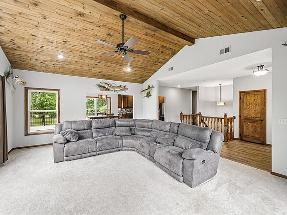 Exceptional 40-acre estate offering unparalleled privacy and luxury living in Isanti. Wildlife is your only neighbors with this amount of land. This stunning rambler with nearly 4,000 sq ft features 5 bedrooms and 3 full bathrooms with thoughtful design throughout. Recently updated with new windows, steel siding. Home also has a new boiler for the in floor heat throughout the lower level and is the main source of heat in the winter time. Main level boasts an open floor plan with granite countertops, a large center island, primary suite with large walk-in bathroom and private toilet room. Plus an additional office/bedroom with closet and attached full bath - perfect for guests or home office. New maintenance-free deck overlooks the pristine acreage. Lower level offers 3 additional bedrooms, large recreation room with wet bar rough-in, washer/dryer hookups on both levels, basement also has walk-out design with concrete covered patio, plus 35' x 25' unfinished area perfect for storage or potential theater room, game room, exercise room or anything else you can think to use this space! The extra 42' x 72' pole barn with electricity and dual garage doors provides endless possibilities for storage, workshop, hobbies or for all your toys. This rare offering combines country tranquility with modern amenities.