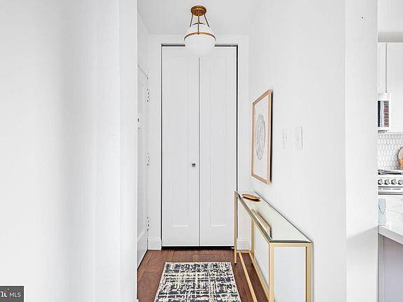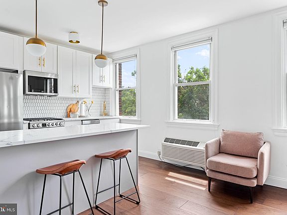 Bright and filled with light top floor 1 bedroom unit at The Clydesdale Cooperative, a boutique Beaux-Arts residence with so much to love. Beautiful hardwood floors, high ceilings, and an entire wall of large windows renovated with modern design features. The kitchen has gorgeous white cabinetry and matching white quartz countertops, stainless steel appliances and pendant lighting over a breakfast bar open to the living and dining room area. The bedroom is very spacious with a walk-in closet and adjoins a full bath with a walk-in shower tiled floor to ceiling. The Clydesdale is directly across from Rock Creek Park with the Woodley Park-Zoo/Adams Morgan Metro lines all easily within reach. Enjoy the convenience of a multitude of Adams Morgan top-rated dining options, retail, grocery and entertainment venues. Pet friendly with a dog park to run free close by. On-site staff available to provide support to residents. Storage unit and bike rack available for a modest monthly fee. Including property taxes, monthly coop fee is $518.00