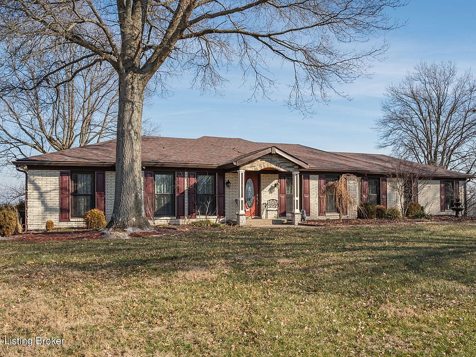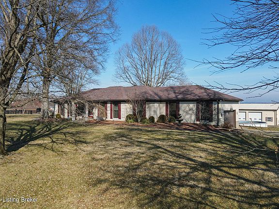 YOUR KENTUCKY PARADISE!! Completely updated, brick ranch with finished walkout basement on approx 8 acres, with 3 large garages/out-buildings, pool (new liner and pump 2022), in 40245. Meticulously maintained, this property has an updated HVAC (2021), ROOF (2019), Water Heater (2019), newly installed gutter system (2022), Windows (2022), new Electrical Panel (2022). Step into the property and you'll agree no detail was spared. The seamless, open transitions from the Kitchen to Dining Area to Family room are highlighted by the natural light pouring through the new windows during the day, and in the evening this flow is accentuated by the detailed trim finishes, tray ceilings, and elegant lighting system throughout carefully installed with an artists touch. The bedrooms offer a peaceful retreat or dedicated office space. The 1st full bathroom is completely updated, centrally located, and worth showing off to all your guests. The primary bath is a calming refuge after a productive work day. A custom built walk in shower, with dual shower heads, double vanity, granite, and dark wood grained cabinets make a tremendous pairing with the large 15x15 Primary suite. The finished walkout has updated laminate flooring and plenty of space to entertain Family or Friends. The bonus room can be used as an office, game room, or large bedroom and is adjacent to the 3rd full bathroom. Step out to the pool or just enjoy the view. The back of the property houses 3 large out-buildings with several garage bays. The largest building is a 40X80 4-bay garage complete with a lift and bathroom. There is no doubt this home will move fast so DON'T MISS OUT! Contact the list agent today for more info or to schedule a private viewing of the property!