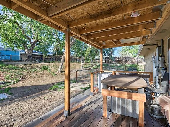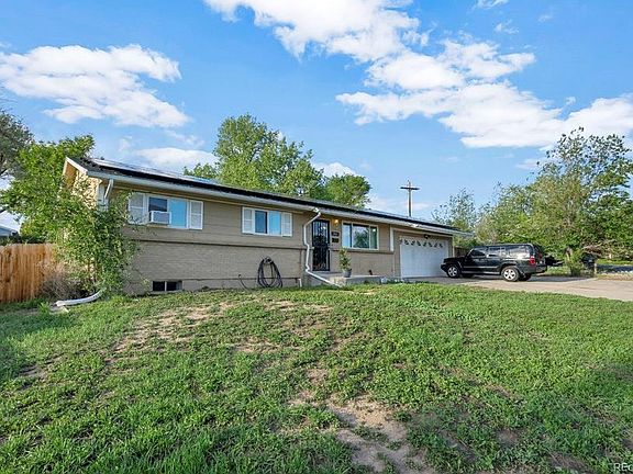 Come out and view this large corner lot property with R.V. parking, 2 car garage, 3 bedrooms 1 bath upstairs, 2 bedrooms (non-conforming) 1 bath downstairs. Close to Skyview High School, Clayton K-8, pools and recreations centers. Solar Panels are owned by seller and fully paid for (value $35k). Newly installed in end of 2014. Solar panels will transfer ownership to new buyer, Xcel writes a check to the home owner $30 - $45 every month for the energy collected. No electricity bill, you get paid instead. 2 washer and dryer hook ups, one in basement and second in garage. Newer furnace, water heater and a/c unit.