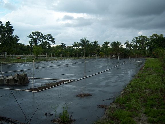 This parcel is on the back 5 acres. Most of the property has buildt in irrigation both from a pond and a well. 3/4 of the property has plastic ground cover. 40x100 msit house from a well. Approx 450 trees valeud at 40-50K. 35 Royal Palms, 60 fox tail palms, 150 roebilini palms, over20 adonitias, 75 queen palms, and 100 silverester Palms. Seller has put over 60K in improvements on the road, irrigation, ground cover etc. He would be willing to lease for 1500 per month.
