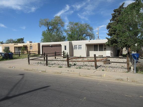 Great Bungalow style, 1 story home with all kitchen appliances, oversize backyard with patio and NO CARPETING! Main entry opens to main living area with lamination flooring and picture windows on east an north walls. To the left is the remodeled and fully equipped kitchen with LVP (luxury vinyl plank) flooring, gas range, dishwasher and side-by-side refrigerator with water/ice dispenser. Kitchen window overlooks front yard, also. From the kitchen is the garage entry - you won't be carrying groceries far! - and then on to the rear patio and oversize backyard with southern exposure. Great for plant lovers and/or home garden aficionados. Also, from the kitchen is the entry to the dining room with laminate flooring, as well, and another picture Either from the main living area or the dining room you will have access to the bedroom hallway leading to the guest bath, 2 guest bedrooms and the master bedroom. All bedrooms have laminate flooring and both the guest and master bathrooms been remodeled. The first guest bedroom, with built-in shelving and storage may be the perfect spot for a home office. The second guest bedroom overlooks the backyard and is served by a walk-in closet. The master bedroom is served by a walk-in closet and a remodeled bath with tiled shower. Close to darn near everything that is Albuquerque.