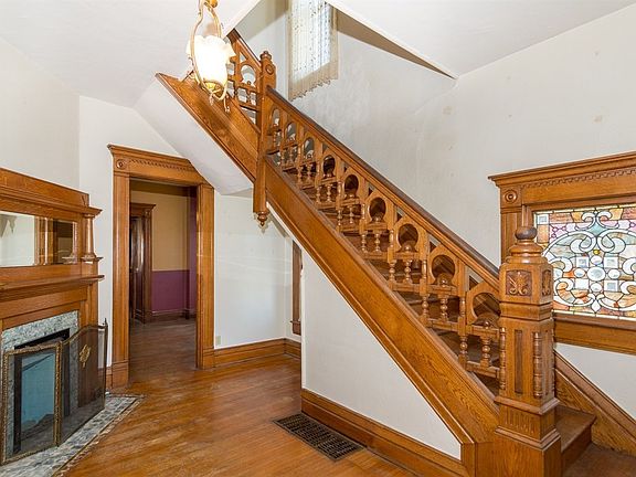 If walls could talk? This home has the old charm and character like no other. Corner lot, Go back in time w/Original woodwork, hardwd flrs, pocket doors, Large foyer w/grand staircase, 5 fireplaces w/original trim work & tile. 3 large bedrms w/hardwood flrs, 2 full bths, back staircase down to kitchen area, Large kitchen w/all appliances included. Huge garage that offers a private office/craft rm, Brick patio & fenced yard w/mature trees. Furn/AC, H20 updated 2011. Immediate possession.