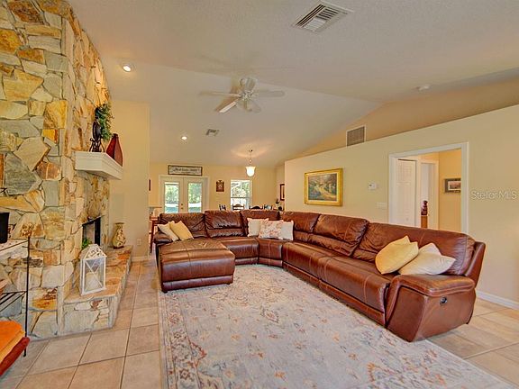MOTHER-IN-LAW SUITE!! NO HOA!! 5 bedrooms, 3 baths, 3 car garage, (2 car garage attached and 1 car garage detached) on 5 acres. Open floor plan. Walk through the front door into the large vaulted great room with a beautiful stone wood burning fireplace. Moving forward into the dining room, with the kitchen on the left, that has NEW granite counter tops. Enjoy cooking and eating your meals while looking out over the lanai, and beautiful back yard. The huge master bedroom has a sitting area and a walk in closet. The Updated master bath has dual sinks, tub, and a separate shower. The 2 other bedrooms and office(that could be the 4th bedroom but has no closet), are on the opposite side of the house. The in-law suite, one bedroom, sitting/dining/kitchen area, and updated bathroom, is attached to the main home, has its own access to the exterior from both the main living area to the front and bedroom to the rear offering the potential for extra family members to reside or to use as a rental space. Ceramic tile in the Living room, kitchen and bathrooms, carpet in the master bedroom, office/4th bedroom, laminate flooring in other bedrooms, laminate/vinyl flooring in in-law suite. Enjoy relaxing or having friends and family over for barbecues, parties, on the large 11' X 24 lanai, overlooking the beautiful back yard. There are 2 AC'S and 2 septic tanks. Come enjoy country living and live among the rich history in the desirable town of Geneva. "TOP RATED SEMINOLE COUNTY SCHOOLS". 2020, Granite counter tops, faucets, recessed lighting in kitchen, updated in-law suite shower, motion detection flood lights outside garage. 2019, Replaced vanity in 2nd bathroom, replaced faucets & shower heads, added "between the glass" blind inserts in French doors and kitchen door, replaced back door in attached garage. 2018, Roof replaced on house and detached garage, replaced water treatment system, added glass inset in front door. 2017, Master bathroom remodeled, 2016, Replace garage door on detached garage, resurfaced driveway with crushed asphalt. 2015, New well, electric hot water heater, and tank-less hot water heater for in-law suite. WELCOME HOME!!!