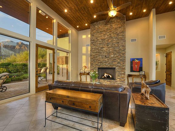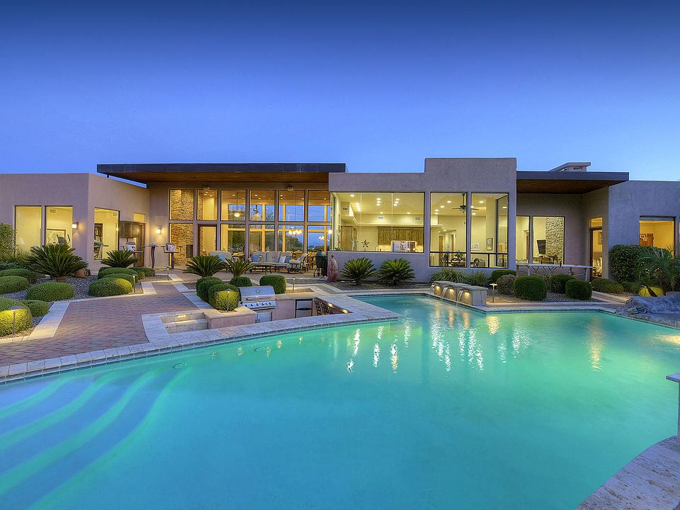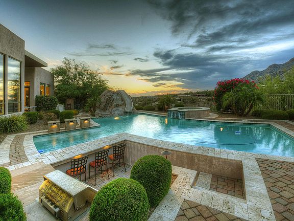 * VIEW VIDEO: https://az.movinghometour.com/22016851_Tucson%20MLS * Incredibly dramatic soft contemporary style home w/magnificent mtn & city views situated on 1.3 acre homesite high on a hill in the Catalina Foothills. Exquisite living rm & dining rm w/14 ft. high floor to ceiling windows, beautiful stacked stone fireplace, gourmet island kit w/granite countertops, Viking stainless steel appliances, gas stove top, refrigerator, pantry, bkst area opens to family rm w/fireplace, travertine tile flrs, 5BR's (split plan) ,6 BA's, billiard rm w/wood flrs, temp. controlled winerm + playroom or computer rm w/ guest qtrs kitchenette, laundry rm & 3 car gar. Resort like backyd w/patio, amazing custom pool, spa, slide,swim up bar, BBQ, grass play area, lush landscaping , Dist. 16 & mtn views. What more could you want! 3D tour under photos/virtual tour.