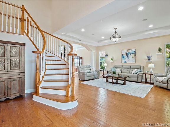 Talk about value! This half-acre waterfront estate home in prestigious guard-gated Stonebrook Estates is move-in ready, or, awaits your vision for a dream home. 5 true bedrooms plus an office allow for flexibility of use and a large family. Upstairs master with bay window and superior views! Great house for gatherings of your family and friends, with large open kitchen with center island. Exterior features rare long lake views, grassy area, pool and decking, & covered patio for al fresco meals and relaxing. Impact doors recently installed in both front and patio (2 months old) & 7 camera hardwired security system. 2 AC units, 1 of which was replaced 3 months ago. Hardwood floors throughout, downstairs bedroom & bathroom have their own entrance and can serve as an ensuite.