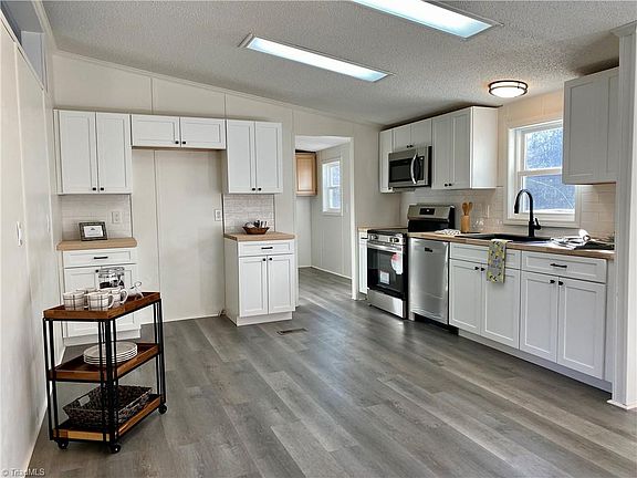 Welcome to your rustic countryside retreat! This spacious 3-bedroom, 2-bathroom home is your haven in the sought-after city of Trinity. Enter into a cozy interior bathed in natural light, thanks to large windows and skylights. The modern kitchen, adorned with new appliances, a charming tile backsplash, and warm butcher block countertops, invites you to create delicious meals while surrounded by the laughter and stories of loved ones. Hang out and cozy up with friends and family in the adjacent den with a wood fireplace, creating cherished memories. Retreat to the generous master suite, complete with a garden tub for your relaxation. Outside, a private yard and deck await - ideal for hosting BBQs and fire pit gatherings under the starlit sky or as a playground for young ones. Tucked away in the heart of the countryside, this home offers the perfect blend of rustic charm, rural tranquility, and city conveniences. Don't miss your chance to live the country dream in this peaceful retreat!