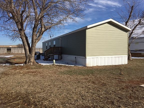 Beautiful manufactured home located in Weatherford, OK. This is a large single wide 16x80 (1200sq.ft.) 2012 Skyline. 3 bedroom 2 bathroom. The master bed/bath has a walk in closet, garden tub, shower, and double sink vanity. The kitchen has an island/bar plus additional cabinet space. Cathedral ceilings throughout the house, and ceiling fans in all bedrooms and the living room. The kitchen/living/dining are all open concept with a nice flow in the house. The guest/2nd bathroom is a full bathroom with a tub/shower combo and vanity located between bedrooms 2 and 3. This is a great starter home that has been taken care of with minimal cosmetic damage. Decks/Porches to front and back door come with the home. The home must be moved at the expense of the buyer. Pets have been kept in this home(dogs and cats). Tours by appointment only with at least a 24 hour notice.