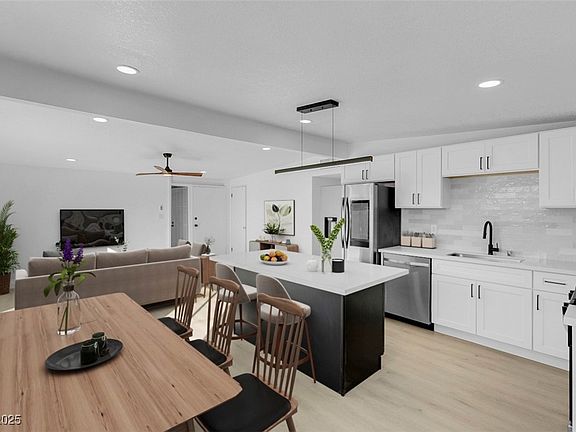 This home hits ALL the bells and whistles. Fully renovated 3-bed, 2-bath home w/ PAID-OFF SOLAR, POOL & NO HOA and a GARAGE! Open floor plan w/ modern finishes, stylish flooring & custom details throughout. Kitchen features brand new countertops, premium appliances & custom cabinets. Primary suite has private ensuite bath. Backyard is a private retreat w/ sparkling pool, perfect for relaxing or entertaining. Detached 1-car garage w/ brand-new door plus a NEW HVAC system & water heater for peace of mind. Prime location near I-15 & US-95, just mins from Downtown LV, Arts District, shopping & dining. Low energy costs & move-in ready -- don’t miss out!!!