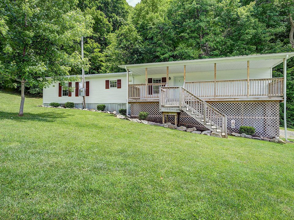 Welcome to your mountain getaway! This completely remodeled 3-bed, 2-bath manufactured home is situated on 5.41 unrestricted acres in Mountain City, TN. You'll love the great flow of this 980 square foot home and its privacy from surrounding neighbors. You also can't beat the sound of a year round stream in the back yard. Outside, the lush landscape provides a serene setting for outdoor enjoyment complete with a year round stream running through the backyard which you can hear from indoors when you open your windows! Plus an amazing outbuilding adds even more functionality to this already special property.