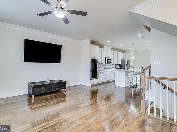 Stunning end-unit 3-level townhome offering style, function, and upgrades throughout. The main level features a gourmet kitchen with white cabinetry, granite countertops, double wall ovens, gas cooktop, microwave, stainless-steel appliances, pendant lighting over island. Hardwood flooring throughout the home and the two secondary bedrooms are carpeted. This home offers open concept, for great gatherings and more. This home includes 3 bedrooms, 2 full baths, and 2 half baths across three thoughtfully designed levels. The upper level offers two bedrooms with custom blinds, while the lower level provides a flexible multipurpose space ideal for work, fitness, media, or guests. Washer and dryer convey, along with TV mounts for added convenience. Outdoor and technology features elevate everyday living, including a fully fenced backyard with patio, 2-car garage with app-enabled door operation, EV charger, ADT readiness, and a tinted storm door for privacy and temperature control. Gas heating and gas cooking complete the comfort package. Move-in ready and meticulously maintained, this home blends modern amenities, smart-home features, and intentional design across all three levels. A must-see for those seeking comfort, convenience, and timeless appeal.