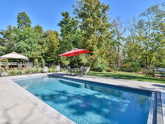 True privacy & luxury await you! New to market this 1.17-acre lot property features a heated salt water inground pool located in the prime of Crestwood with access to Oldham County Schools. The 1.5 story home is incredibly impressive with over 3,000+ sqft above grade with 4 bedrooms & 3 full bathrooms - providing a stunning floor plan with a first floor owner's suite and guest bedroom suite! The main level consists of an amazing gourmet eat-in kitchen with stainless steel appliances and granite tops. The great-room has double height ceilings with expansive windows overlooking the backyard and pool. A double-sided gas fireplace flows from the great room to the sophisticated formal dining room. Hardwood floors flow throughout the home and a large laundry room is conveniently located on the main level. The exquisite owner's suite opens to the rear private covered patio overlooking the backyard. The private master bath has double vanities, corner jetted tub, large corner shower and custom- fitted walk-in closet. The second floor includes 2 attractive bedrooms, full bath and a loft space overlooking the 2 story foyer. This home offers 2,100+ sq ft of unfinished space in the walkout lower level ready to be finished to your needs. The lower level has 8' 9' ceiling heights, an abundance of windows, 2 sets of double doors, and a full bath rough in. The lower level combined allows for over 5,000 sqft of finished living space! The ultra-low maintenance fiberglass inground pool recently installed by Wetscaptes is 12' x 35', has 11,000 gallons, heated & saltwater. The lavish travertine pool edge surround offers ample areas for lounging on the sun deck. The pool's automatic hard cover is equipped for safety measures. No expense was spared to create a premiere entertaining environment. The park-like property with mature trees and manicured lawn also has a fenced backyard. This prominent must-see home is complete with a 2-car garage and a circular driveway to provide parking for all your guests.
