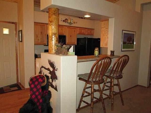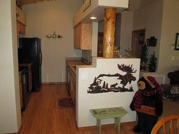 Cute as a bug and clean and tidy. laminate in kitchen & dining. Knotty Oak cabinets, Aspen T & G ceiling in living areas. Gas fireplace wtih glass doors & juniper mantle. Upgraded ceiling fan in GR. Both baths has hardwood floors! Recently restained, gutters installed, paved driveway and sidewalk. Great price! Brokered And Advertised By: LAURIE McCAIN REALTY, LLC Listing Agent: Laurie Mccain