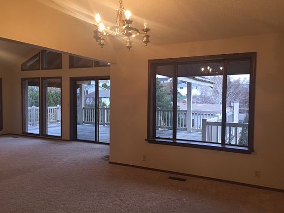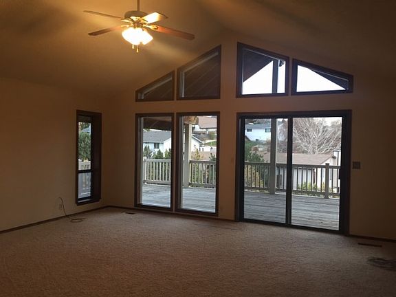 WHAT A VIEW! This Highland area home with wrap-around deck features large rooms and fabulous views of the valley. Huge living and dining room with lots of windows and sliding doors that open up to large covered deck. Main floor also features big kitchen with breakfast nook and den/family room off of kitchen, 3 bedrooms, and 2 baths. Downstairs features additional kitchen, living room, family room, 2 bedrooms, and bath with walk-in shower. Laundry on both levels. Two garages with 4+ parking spaces. Don't miss out on this one!