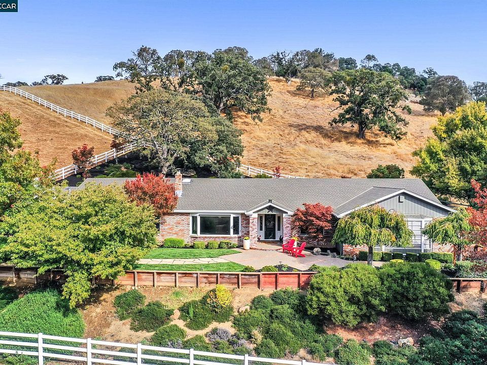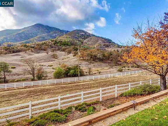 Dream country estate. Spacious single-story home with stunning unobstructed views of Mt. Diablo and the rolling hills. Direct access across the street to miles of hiking, horseback riding trails. Every room boasts an elegant traditional style. Light filled kitchen with huge breakfast bar/island, informal dining nook, SS appliance, gas range, subzero fridge/freezer, wine cooler, slab granite, extensive cabinet storage, access to formal dining room and sliding door to covered outdoor built in BBQ area. Grand great room with gas fireplace with floor to ceiling artistic rock surround, flanked by wall of windows. Parlor/office/or billiard room with gas fireplace and picture window to take in the incredible views. Beautiful private primary suite with 3rd gas fireplace, sliding door to private patio with views. Primary bathroom with dual sinks, walk in shower, soaking tub and outfitted walk-in closet. Over 4 acres with barn, several pastures. Flat area perfect for arena, sports court, ADU. Let your imagination go. Fenced yard around perimeter of home for dogs, kids...Lawn area. Gated entrance. 3 car garage with EV charging ability and workshop. Bring your toys, animals you name it. This is a phenomenal opportunity to own a beautiful ranch just minutes to downtown Clayton. City Water!