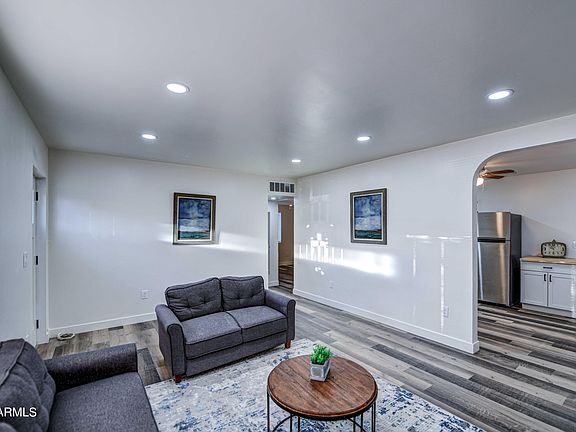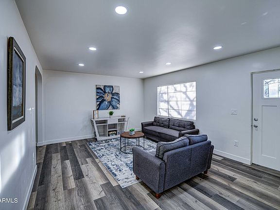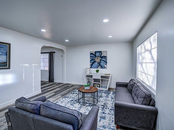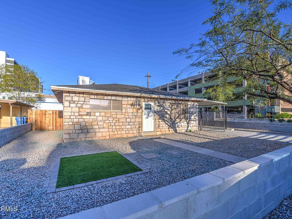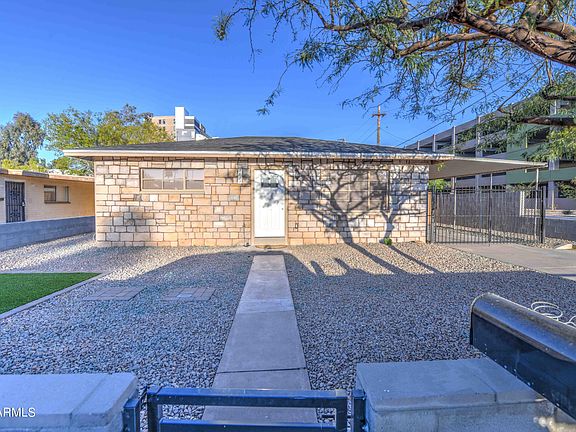 This charming house is completely remodeled with new roof, exterior, appliances and flooring. It is centrally located right next to the Phoenix Children's Hospital and can be a great place for multigenerational living, an income property or someone who is interested in renting out the studio as supplemental income. You get 2 for the price of 1 with this absolutely charming home. The main home has large living room, kitchen, 2 bedrooms and 1 bath. In the rear is a mother-in-law suite with it's own studio, bath, & Kitchenette. Corner lot so you only have neighbors on one side. Spotless clean from ceiling to floor. Wood-like tile flooring throughout. Quartz counters, contemporary cabinets, and stainless steel appliances in the kitchen.