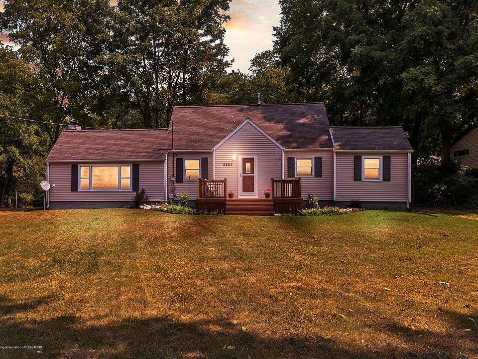 Situated on almost a full acre, this move in ready home is located at the perfect location in Lansing...a few minutes from Meridian Township, as well as Downtown Lansing. When you first walk into the home, you will be captivated by the expansive living room with cozy fireplace. Imagine spending many nights relaxing in this room. Open to the living room is the spacious dining room with hardwood floors. At the front of the home is another entrance with a newly installed deck and, when entering,has a foyer with coat closet. Adjacent to the dining room is the modern galley kitchen with black appliances. Off of the kitchen is a charming den that can be used for an office or TV room. In the bedroom wing on the first floor are 2 bedrooms and full bathroom with beautiful tile work and updated fixtures. Upstairs, you will find a massive master bedroom with many nooks for storage. The completely dry basement has enough room for all of your storage needs and is where the laundry area is