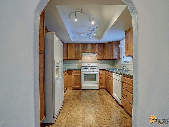 This tucked away gem offers privacy and easy access to Wasilla. The yard provides plenty of parking and a quiet pavilion in the backyard to enjoy those long summer days. This great family home features a large kitchen with oak cabinets, granite countertops + tiled backsplash. The home features two master suites. Two bedrooms up and 2 down. Updates include - All new interior paint including the....