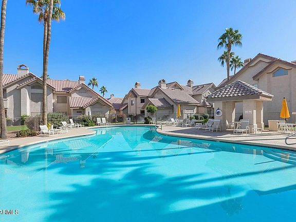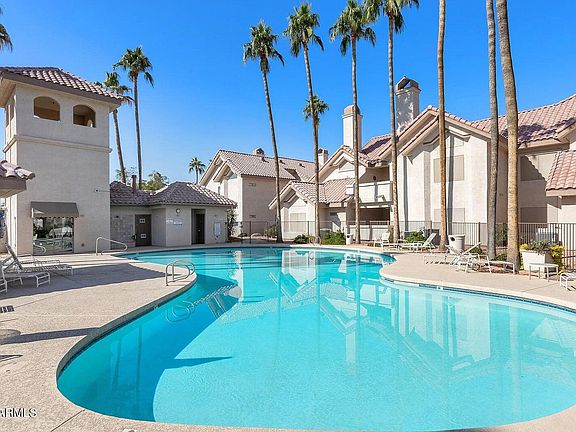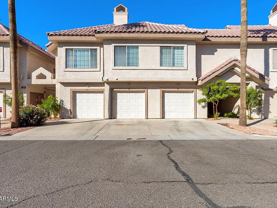Spacious 2 bed/2 bath condo w/ vaulted ceilings & beautiful natural light. This quiet end unit is close to the pool and common areas. Large covered patio and attached garage with direct access to home. Main floor master bedroom has a full bath w/ double sinks and granite counters. Second bedroom & full bath upstairs along w/ a generous loft space that's perfect for an office or play area. Kitchen features granite countertops with plenty of storage. The monthly HOA dues include ROOF repair, trash, water/sewer, cable TV, pest control, exterior maintenance of building, landscaping, and pool & common areas. Quiet Gated Community offers a pool/spa, gym, clubhouse & tennis courts. Conveniently located close to I-10, great golf courses, Estrella Mount. Comm. College & parks