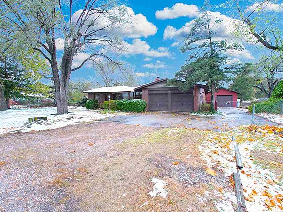 Welcome home to this Mid Century full brick ranch on almost 1/2 acre lot. Original hardwood floors in the bedrooms and formal dining room. Large living room with a full wall fireplace, perfect space for entertaining! Nice sized kitchen with cabinets to the ceiling and adjoining utility room makes laundry a breeze! Enjoy the sunroom and watch the changing seasons. The backyard is fully fenced-in, covered patio and the 3rd car detached garage has drive-thru garage doors. HVAC new 2017, all appliances stay including the washer, dryer, and freezer. Don't delay, schedule your showing today!