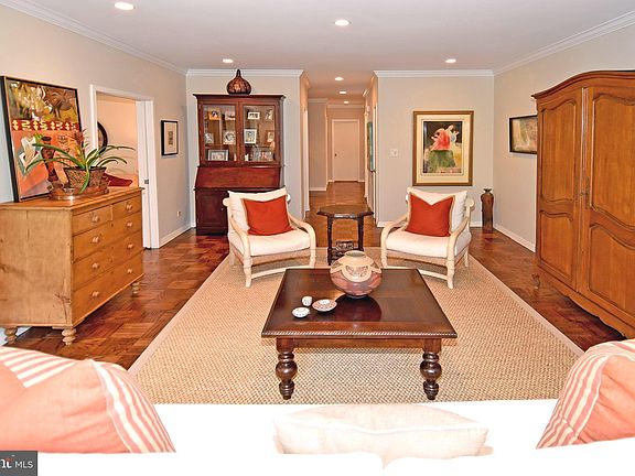 Spacious, bright and move in ready! 1BR/DEN unit with 2 full baths, private balcony, formal dining room, den doubles as a guest room. This stunning unit has it all! Recessed lights, crown molding, french style pocket doors, gleaming hardwood floors, custom built-ins/book cases, cabinetry conceals electronics, en-suite master with extra large custom walk-in closet, loaded with storage, oversized windows, 9' ceilings, both bathrooms boast carrara marble floors + walls. Beautifully laid out eat-in kitchen with tons of cabinet space, bay windows with plantation shutters. The Colonnade is a full service luxury building known for its fabulous amenities, the most beautiful pool in DC and a top notch staff. Front desk, doormen, valet, 24 hour fitness center, on site maintenance engineers, meeting, party rooms and more! Pet friendly. Parking and a double storage unit convey. Fee all inclusive.